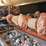 Doe eens iets anders! Eet vlees van een spies. Diverse grote stukken vlees waar ter plekke door de kok plakjes worden afgesneden.
